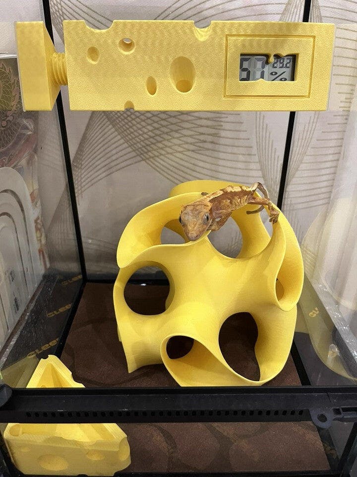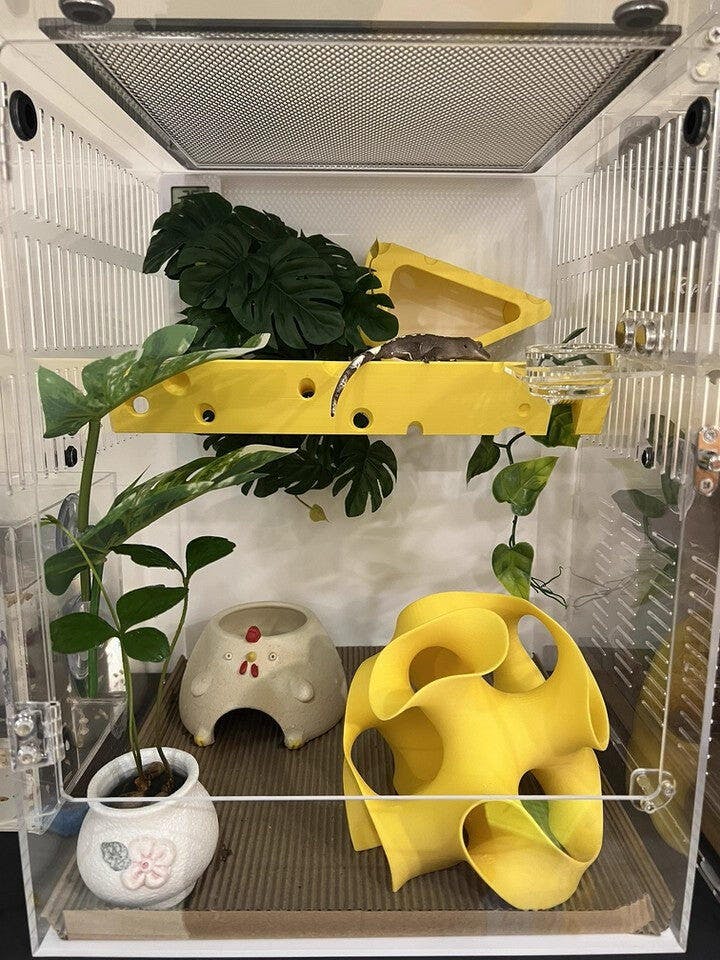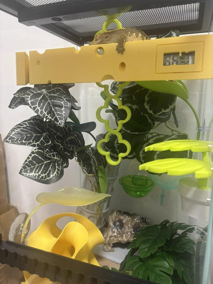 An awesome all-in-one hide and climbing house—my crested gecko absolutely loves it. The yellow color looks so lively, and paired with a water dish and climbing branch, it’s perfect.